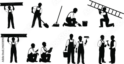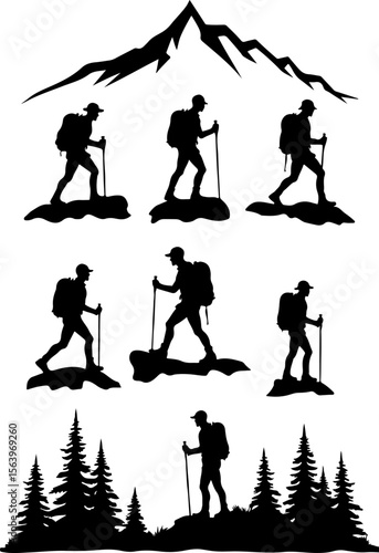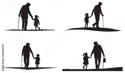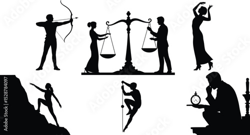 Active people characters at rope park entertainment balck-and-white silhouette isolated set. Children, parent and kids, adult couple, little friends having fun attraction outdoor adventure vector illustration