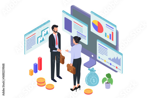 People catching bugs on laptop computer screen, flat vector isometric illustration. Software testing, quality assurance, debugging.