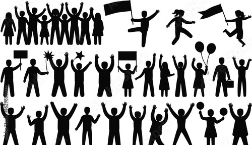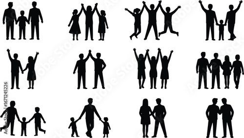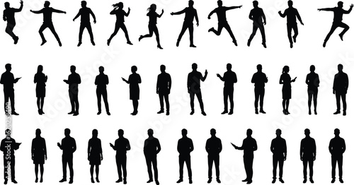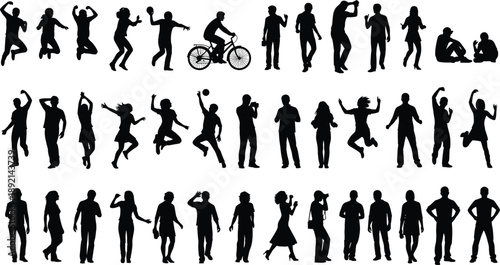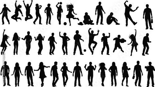 People characters dancing alone colorful silhouette isolated set. Man, woman, children of different age having fun, moving to music, partying and clubbing vector illustration