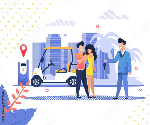 Man and woman charging cars at electric vehicle charging station, flat vector illustration. Ev charger, bicycle parking. Eco transport.