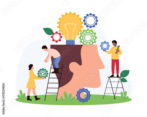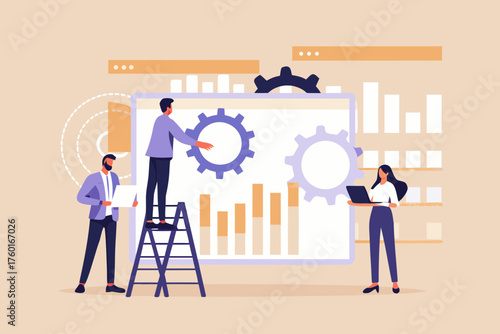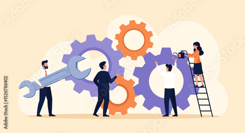 People coughing, having difficulty breathing because of industrial factory smog, flat vector illustration. Climate change, global effect of air pollution, bad ecology, environmental problem.