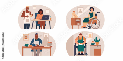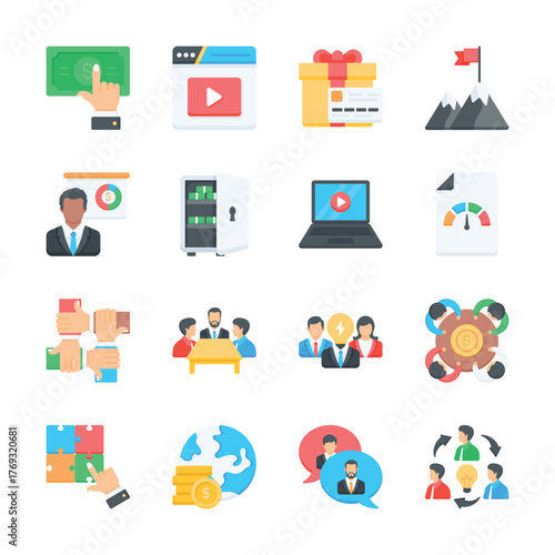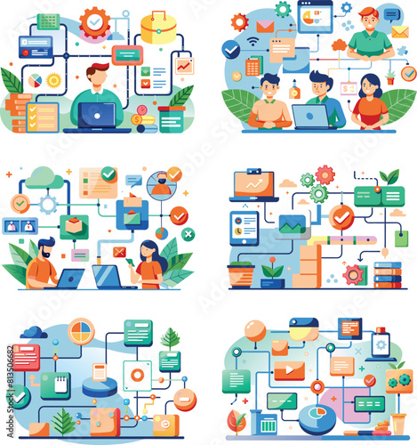 Group of business people discussing project startup, company strategy, vector flat top view illustration. Boardroom meeting, conference, brainstorm, teamwork, handshake.