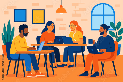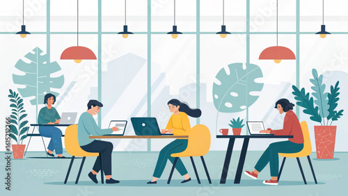People doing exercise in gym concept vector illustration. Fitness workout. Man and woman running on treadmill. Sport gym equipment.