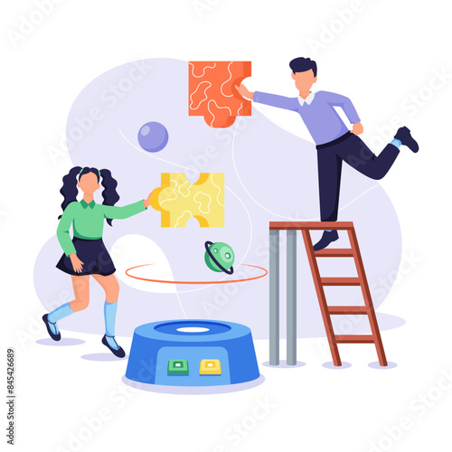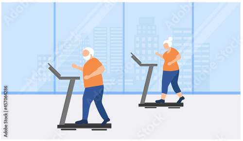 Fitness people doing sports using gym equipment barbell, dumbbell, kettlebell, trx, treadmill, vector flat illustration isolated on white background. Strength training, weightlifting, bodybuilding.