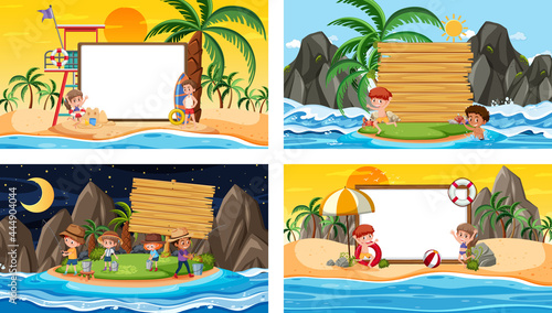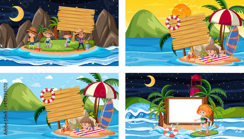 People doing yoga exercise in a city park, balcony or home backyard. Healthy lifestyle concept vector illustration. Man meditate in his yard. Young girl keep balance in yoga pose.