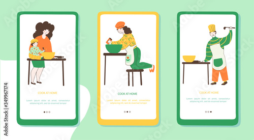 People eating pizza and drinking soda at home. Fast food home delivery. Mobile app screens. Vector banner template for website and mobile development. Web site and UI design illustration.