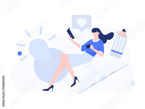 People eating vegetarian food, fresh vegetable salad, flat vector illustration. Natural organic food, vegan diet, vegetarianism, healthy lifestyle.