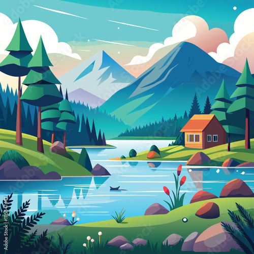 Hot springs pool. People enjoying thermal spa water in winter, flat vector illustration. Mountain onsen, japanese natural hot springs resort. Relax, recreation.