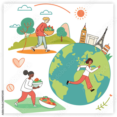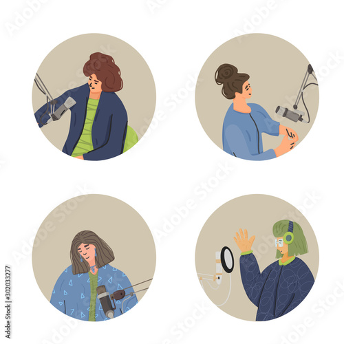 People enjoying their hobbies vector flat illustration. Guitar playing, sculpting, dancing, photography or video shooting. Music, arts and craft hobbies.