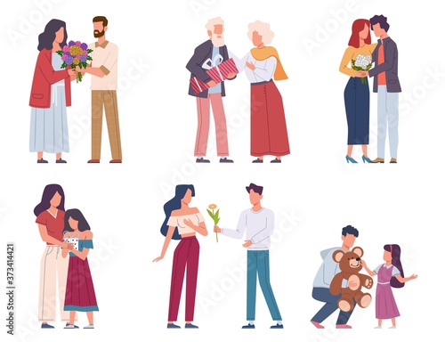 Happy people using ok and thumb up hand gestures while speaking, vector flat isolated illustration. Male and female characters expressing positive emotions and agreement. Consent and approval gestures