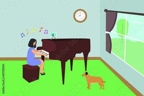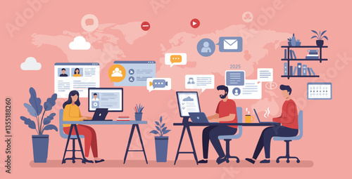 Woman with megaphone standing on huge smartphone and people giving likes with heart, star, thumb up symbols, flat vector illustration. Social media comments, customer feedback, good review, rating.