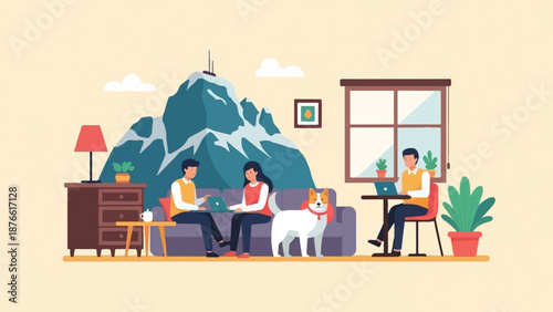 People wearing Halloween carnival costumes walking in city park, flat vector illustration. Happy Halloween party celebration. Trick or treat.