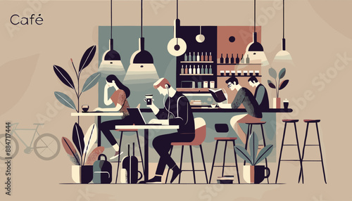 People in flower shop, flat vector illustration. Male, female characters selling buying cactus succulent plants, other decorative indoor plants in flower pots. Florist shop interior. Floral business.