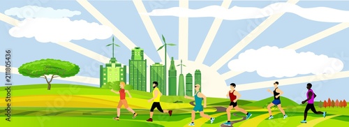People in park concept banner. Time with kids and friends in park. Vector illustration in flat style design.