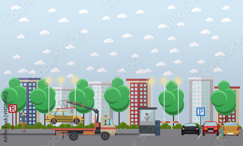 People in park concept banner. Time with kids and friends in park. Vector illustration in flat style design.