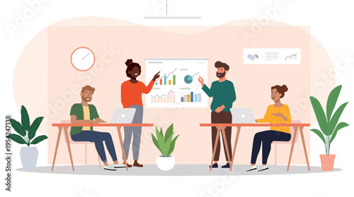 People in queue to cashier in grocery store or supermarket concept vector illustration. Customers buy fruits and vegetables. Woman with trolley waiting for checkout in grocery shop market.