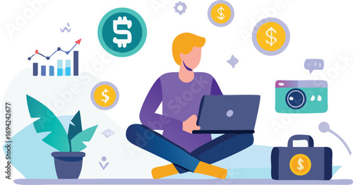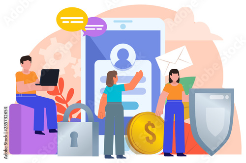 People listening to music, radio program or podcasts online, flat vector illustration. Podcasting.