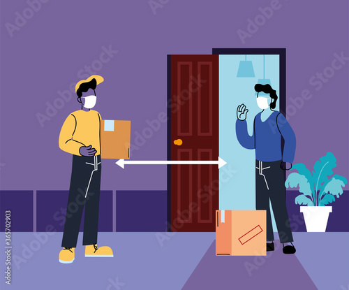 People packing books, kitchen utensils, other things and belongings in cardboard boxes, loaders carrying sofa, loading truck with boxes, flat vector illustration. Moving house and relocation services.