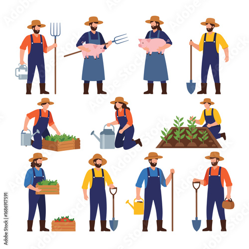 People of different occupations and professions, flat vector illustration. Worker in uniform, cartoon character set. Businessman, race driver, priest, showman, singer, delivery man, policewoman.