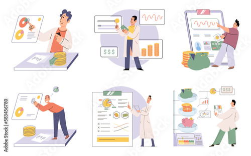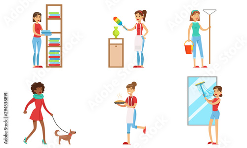Cartoon people opening doors, entering, exiting vector scene set. man and woman of different age at doorways and entrances illustration. Characters going through house and office entries