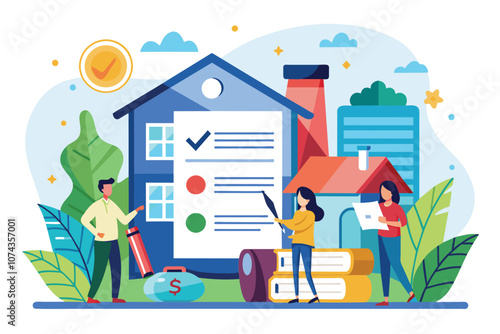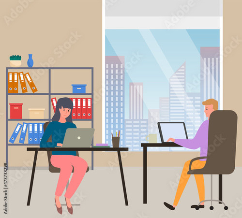 Happy people riding electric scooters, running in city park, flat vector illustration. Active and healthy lifestyle. Summer outdoor activity. Eco city transport.