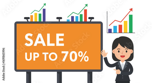 Vector illustration of promoter female advertising sausages. People shopping flat style design element, icon isolated on white background.