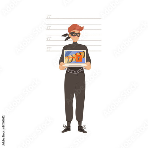 Vector illustration of buyer male with shopping bag full of groceries. People shopping flat style design element, icon isolated on white background.