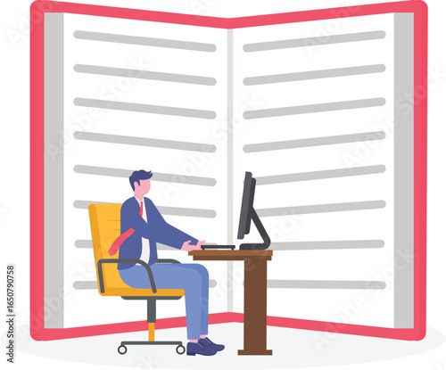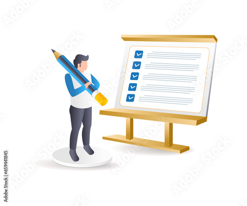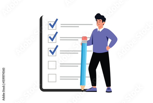 Vector illustration of buyer male with shopping basket full of groceries. People shopping flat style design element, icon isolated on white background.