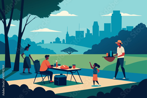 People taking rest on ocean beach, riding water scooter, playing ball, SUP surfing, swimming and snorkeling, flat vector illustration. Tropical vacation. Travel. Summer beach activities.