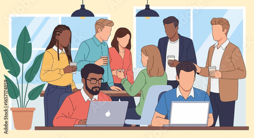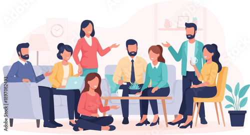 People visiting cafe, vector flat illustration. Happy male and female characters best friends meeting in cafe, restaurant, bar, beer pub. People talking, drinking wine, beer and having fun.