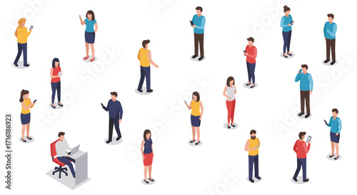 People waiting in line at ticket box or registration counter, vector flat illustration. Characters standing right behind people in one line and keeping social distancing, wearing face masks in other.