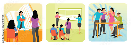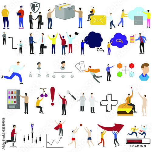 People waiting in line for humanitarian aid, vector flat illustration. Refugee needy elderly standing right behind people in one line and keeping social distancing, wearing face masks in other queue.