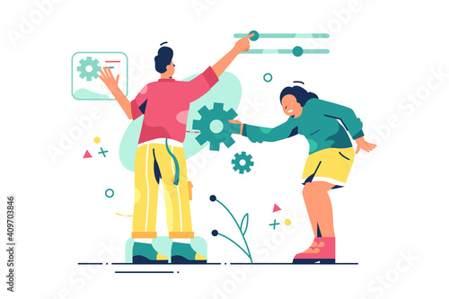 Male and female cartoon characters washing hands with soap and using hand sanitizer, flat vector illustration. Coronavirus disinfection, personal hygiene. Corona virus pandemic prevention.