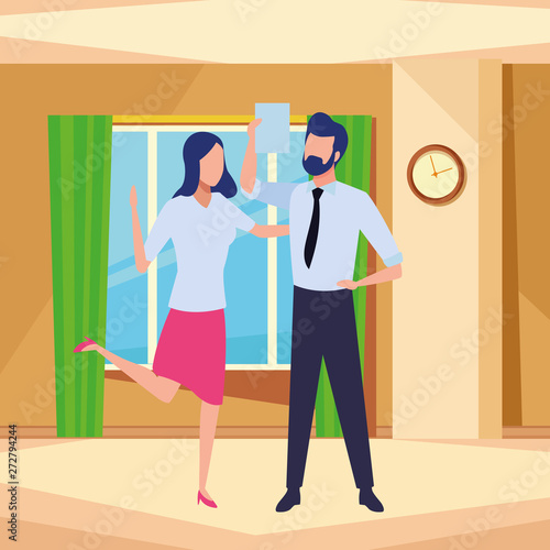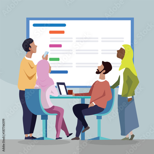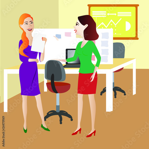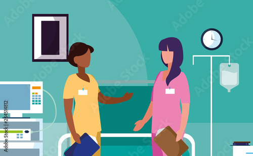 Vector illustration of temporarily disabled people visiting doctor. Man with broken leg using crutches and woman with broken arm in plaster. Flat style design.