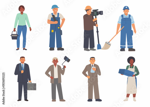 People working on frontlines of corona virus pandemic vector flat illustration. Healthcare workers fighting virus firsthand. Police force delivery cleaning companies staff providing essential services