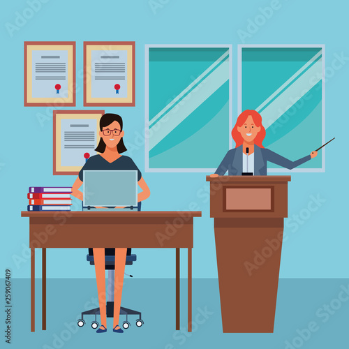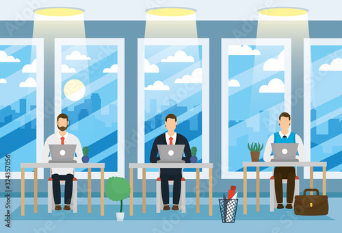 Vector illustration of bank personal manager female and customer male. Banking services concept design element in flat style.