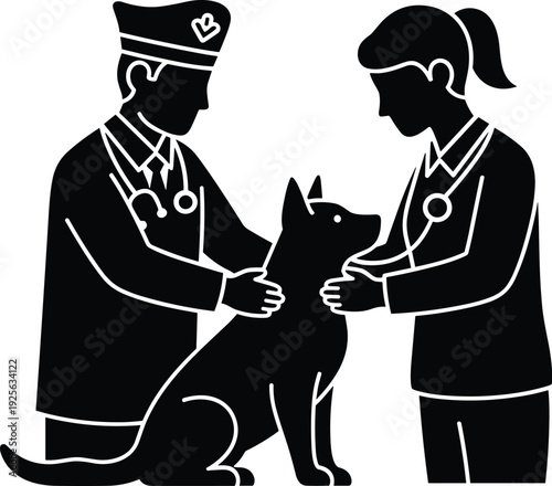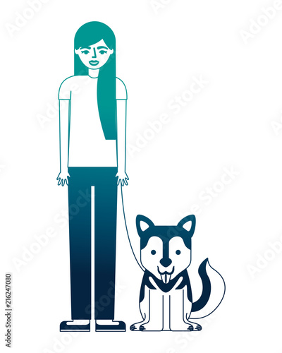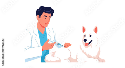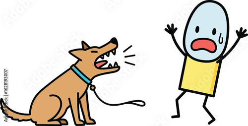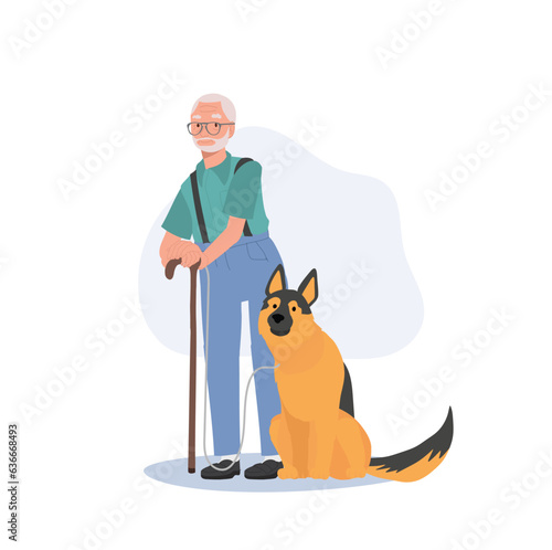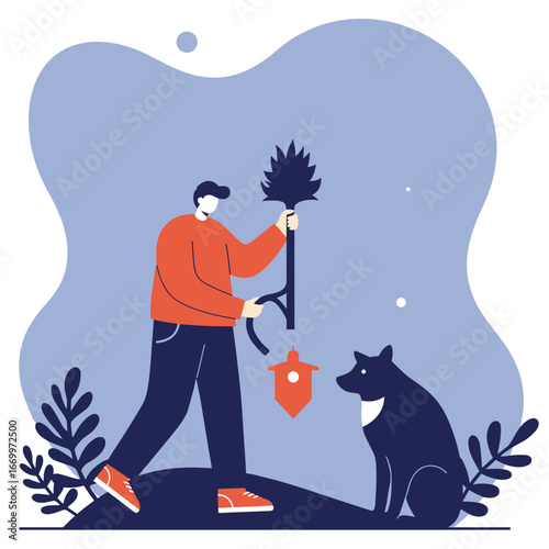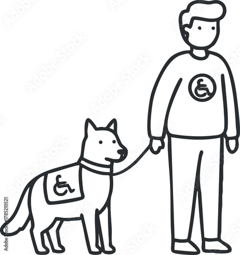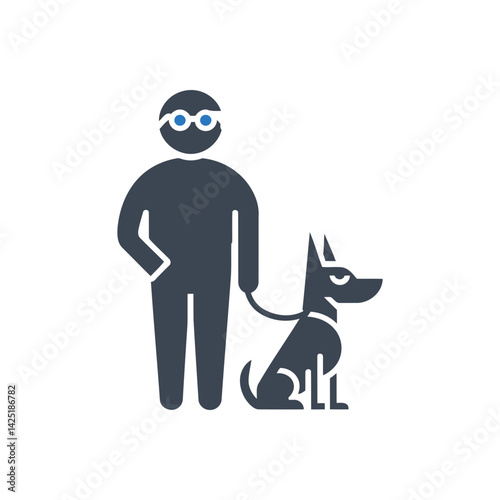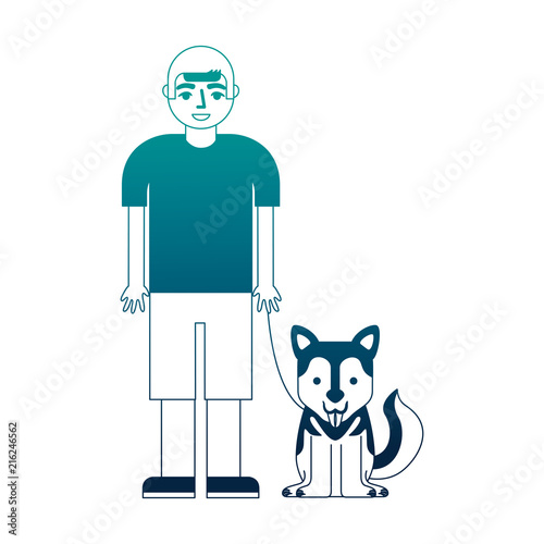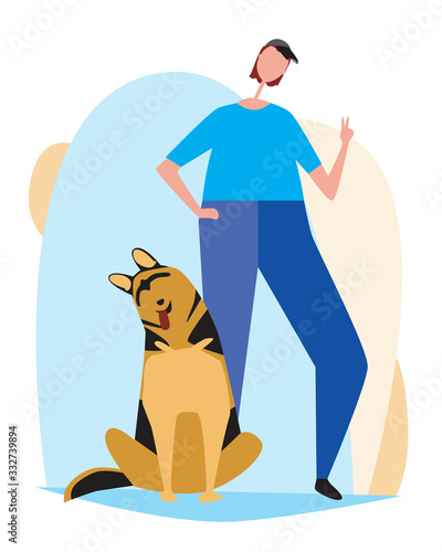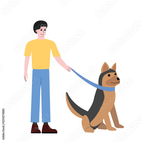 Pet owner with dog vector icon. Male puppy lover standing isolated on white background. Character and canine portrait