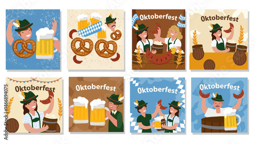 Pet owner with dog going shopping, visiting restaurant or bakery shop scene. Man and woman with friendly puppy domestic animal spending time together vector illustration. Dog-friendly places