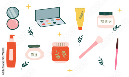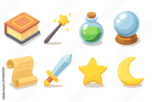 Pet shop assortment with dog accessories vector set. Cute puppy muzzle, toy bone, bowl for food, meal pack and can, canine leash and collar, footprint and pile of poop isolated icons illustration