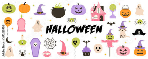 Pets grooming set, vector flat illustration isolated on white background. Cute dogs taking bath, getting hairstyle. Dog baths, haircuts, nail trimming tools and accessories for card, web banner etc.