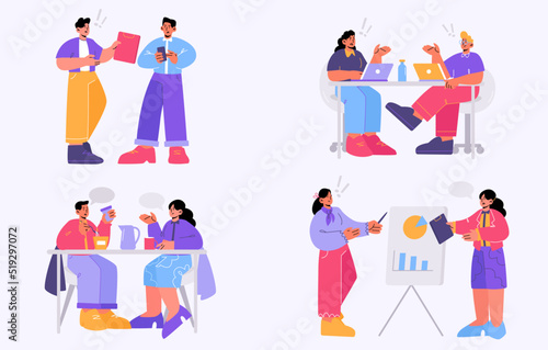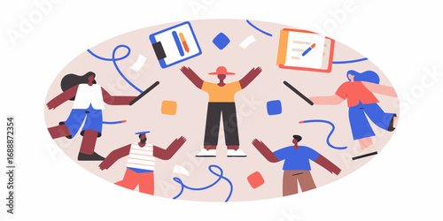 Pets typography vector banner template. Happy people with dogs. Men, women, kids walking, feeding, training their puppies, visiting vet. Homeless pet adoption, dog training classes, animal care.