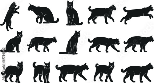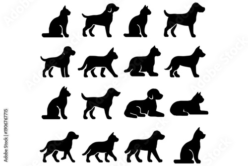 Pets vector. Cats and dogs set. Cute cartoon domestic animal character design isolated on white background. Puppy and kitten with different poses and emotions icon collection