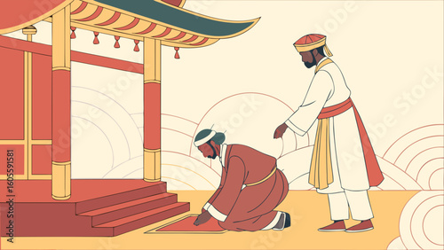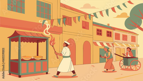 Drug manufacturing process, flat vector illustration. Pharmaceutical production line at pharma factory, glass beakers on conveyor belt. Pharmacists working at pharmaceutical plant. Pharmacy industry.