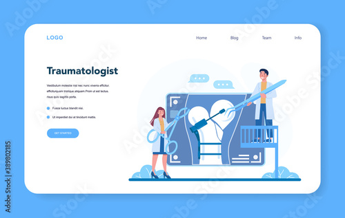 Phone repair service landing page website template. Vector isometric smartphone with shattered screen and professional techs repairing cell phone screen.