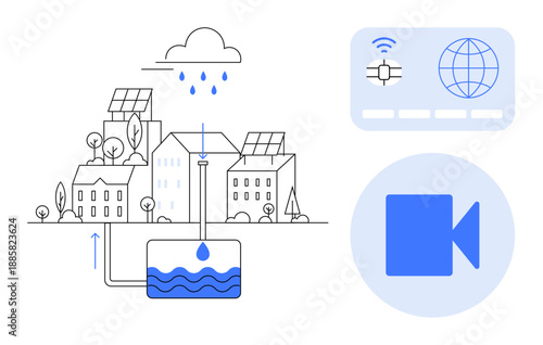 Photo concept vector illustration. Modern thin line art flat style design element in the shape of photography lighting umbrella with photographic icons for website banners and printed materials.