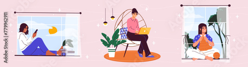 Photographer landing page design, website banner template set, flat vector illustration. Woman taking photo of nature with camera. Professional photography equipment. Creative profession or hobby.