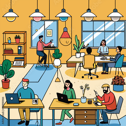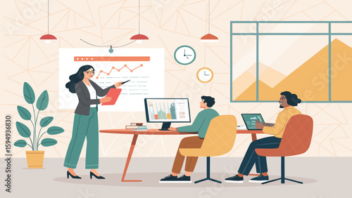 Photographer shooting young girl model, celebrity and mens apparel with professional camera in studio, flat vector illustration. Photographer profession. Photoshoot.