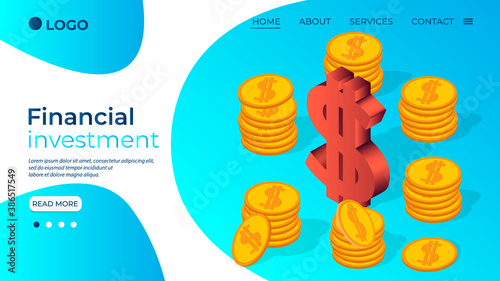 Piggy bank money vector website template, web page and landing page design for website and mobile site development. Money savings, financial investment concepts.
