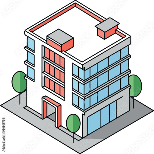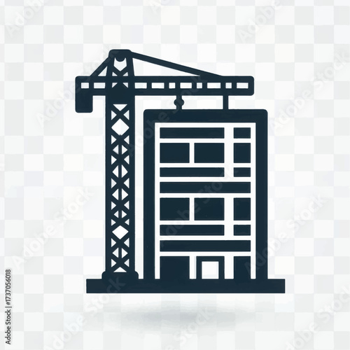 Pillar crane building house icon vector. Isometric 3d skyscraper architecture composition isolated on white background