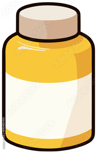 Pills bottle icon. Vitamin jar vector. Supplement plastic container isolated on white. Medicine, drugstore or veterinarian pet shop symbol